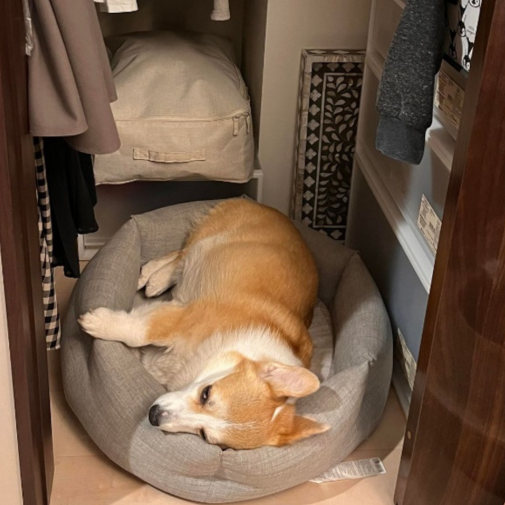 After clearing out the clutter, we created an empty space on the closet floor, which has become my dog’s favorite sleeping spot. She feels safe there.